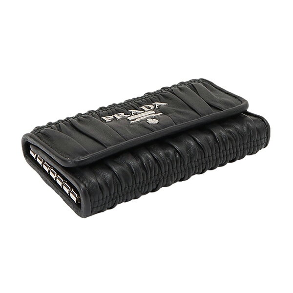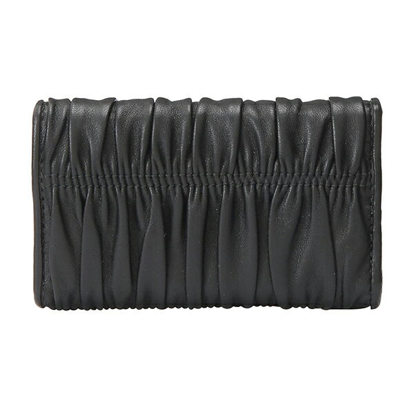 細やかなギャザーを全面に施し、豊かな表情とモダンなメリハリがプラスされた洗練レディな6連ホルダー付きのキーケース。
